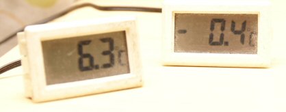 Pentru conformitate, aplic poza. Termometrul celălalt indică temperatura din cameră. 😀 În fotografie, temperatura din cameră arată niţel mai mare, din cauza genunchiului meu aflat în vecinătatea sondei. În realitate, e 5,5. Iar acum, afară, -0,5.