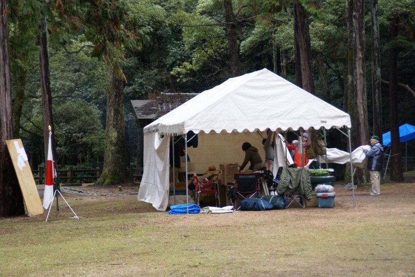 Cei de la Tsutsumi-ga-ura aveau în plan să facă şi un foc de tabără un pic mai în amonte, în seara în care noi am ajuns, însă evenimentul a fost anulat din cauza vremii. A doua zi, cînd ne-am întors din incursiunea „arheologică” membrii strîngeau tabăra.