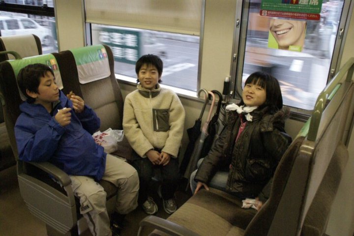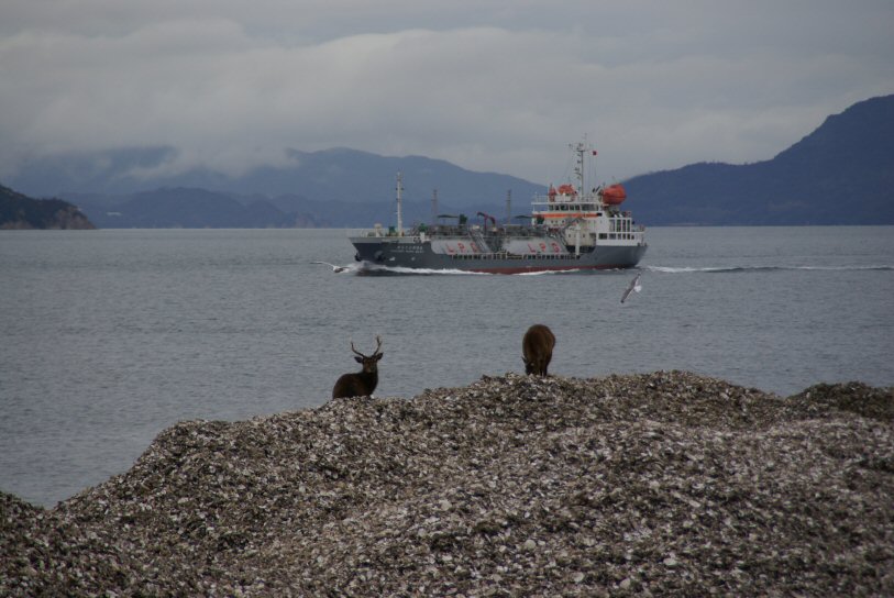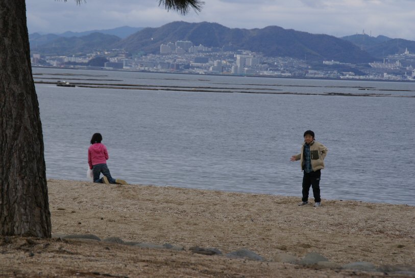 Pînă în anul 2007 cînd fiul meu a prins în greutate cît să nu îl mai pot căra, mergeam la Tsutsumi-ga-ura cu bicicleta. Luam feribotul de la Miyajima-guchi (Gura Miyajimei) 10 minute, apoi din nou pe bicicletă prin două mici pasuri (unul dublu tunelat) încă 3Km. Deşi fiul meu e „biciclistic” autonom, nu mă încumet încă să îl expun unui drum de 22-25Km, pe alocuri periculos de îngust, în condiţiile unei circulaţii intense. Actualmente prefer trenul.