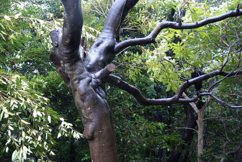 (jos) Un copac rudă cu cameliul făcea culturism şi îşi etala muşchii abdominali.