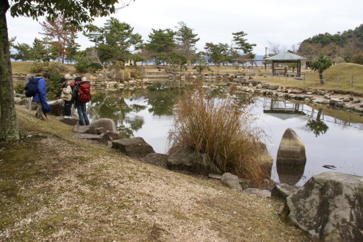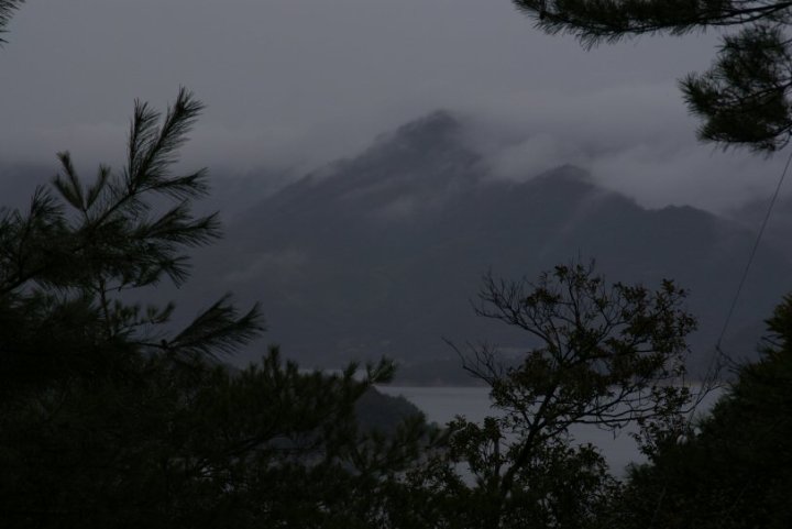 Pe Misen era exclus să urcăm, deşi, dacă vremea ar fi ţinut cu noi, intenţia era să prindem răsăritul pe pisc. Ne-am mulţumit să dăm roată pe la poalele insulei. Am luat-o pe un drum ce duce la o staţie de pompare de pe versantul estic, ceva mai sălbatic, altminteri desemnat ca zonă de protecţie sanitară pentru colectarea apei de băut. Beneficiar, oraşul Hatsukaichi. Dacă nu ar fi aria protejată, s-ar putea face un tur complet al insulei în vreo 20-30Km.