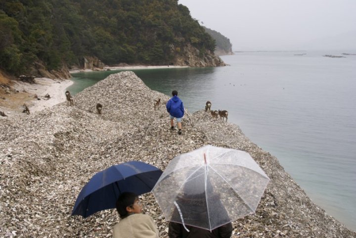 Copiii s-au minunat de (omni)prezenţa căprioarelor şi au început să le numere. Pînă la Tsutsumi-ga-ura, 107 capete.
