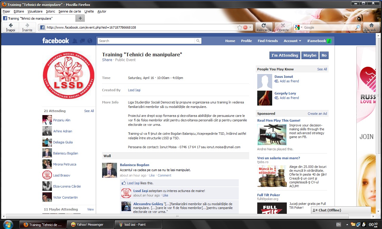 desi este cam tarziu, va trimit un print-screen cu invitatia la un training organizat de tineretul PSD, culmea…tot din Iasi: