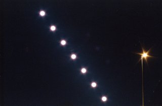 Atît mi-a luat să fac fotografia de mai sus. O oră. Am făcut-o azi dimineaţă, pe film Kodak de ISO400 (27゜DIN), între orele 04:40 şi 05:40, cu un aparat foto vechi de 20 19 de ani. Un Minolta α-5xi. Am programat IC-card-ul (Multiexposure) să suprapună 7 imagini*, la intervale de cîte 10 minute. Expunerea am ales-o manual: 7xS-1/15s, A-f/5,6. Obiectivul a avut focală fixă: 90mm.