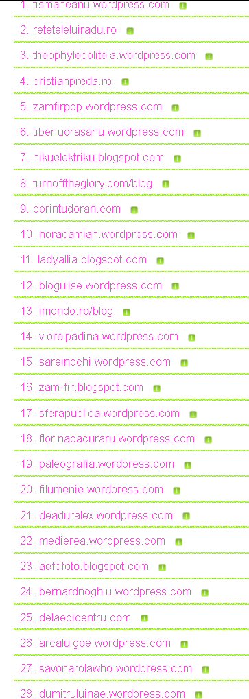 Le mulţumesc tuturor celor care şi-au pus în blogroll adresa blogului de faţă. Îi anunţ pe cei listaţi mai jos, că, dacă în continuare vor avea amabilitatea de a-mi urmări „opera”, noua adresă este http://delaepicentru.com