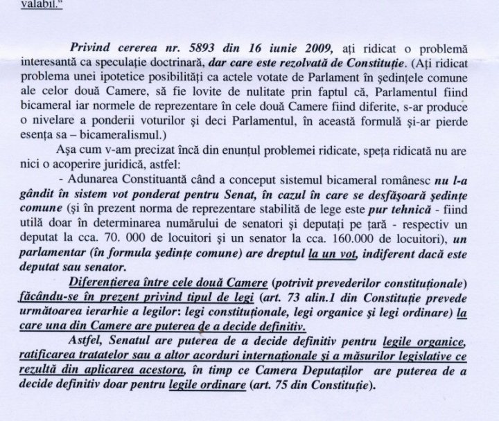 Dacă CCR decide că Parlamentul rămîne bicameral, atunci, unele atribuţii decizionale ale Senatului decad, în cazul legilor organice, puterea decizională revenind de drept, Camerei. Sigur, şedinţele comune nu pot fi interzise. Dar în mod logic, în acest caz, rămîn în vigoare doar art.65(2)a). şi 82(2). Cu alte cuvinte, Senatul devine un fel de… cameră de oaspeţi.