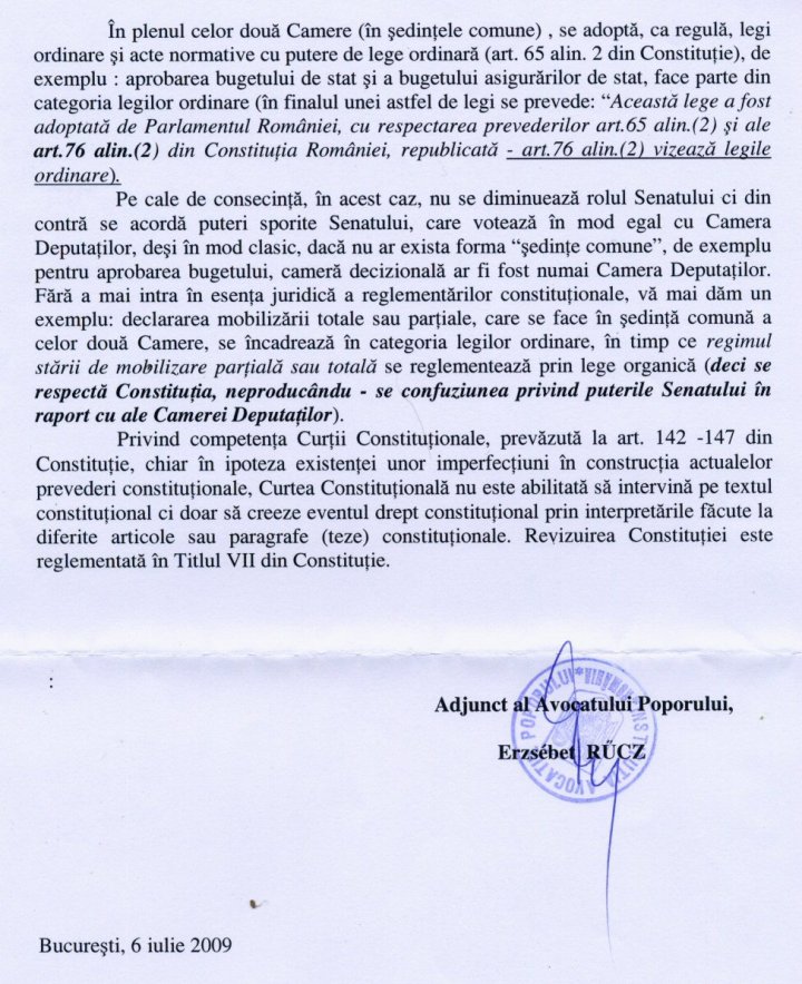 Am adăugat azi, 25 martie 2010 răspunsul de la AvP sosit la 17 iulie 2009. Întrucît el cuprindea şi altă problemă ridicată, am spart cele trei pagini în două. De vreţi antetul şi numărul de înregistrare la AvP, îl găsiţi aici.