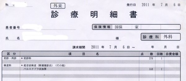 La partea strict medicală, am plătit 5500yen, însă în motivaţia scrisă nu apare testul APG, ci numai investigaţia cu: ultrasunete pulsative şi analiza efectului Doppler. Acuma, ori a uitat cineva să consemneze testul cu pricina, ori cele două investigaţii sunt contopite contabiliceşte. (vom vedea mai încolo)
