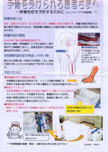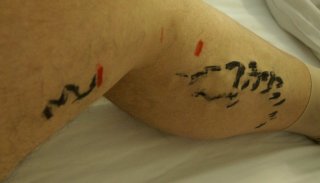 Urc la etajul 5 (pe româneşte 4), unde sunt întîmpinat de asistenta responsabilă de etaj; un tînăr uşor încurcat, deoarece salonul în care urma să fiu plasat nu avea patul gata. Am fost introdus într-o rezervă unde mi s-a făcut instructajul de tragere a ciorapilor compresori ce urma să îi port după operaţii. Manevră deloc uşoară, întrucît ciorapii sunt dintr-un material supraelastic aderent. Presiunea este gradată descendent pe verticală. Dacă la gleznă presiunea este de 40hPa, pe gambă, ea scade la 30hPa. Orice imperfecţiune în aplicarea ciorapilor provoacă suferinţă fizică. Am ajuns relativ repede la performanţa de a trage ciorapii medicinali în 10 minute.