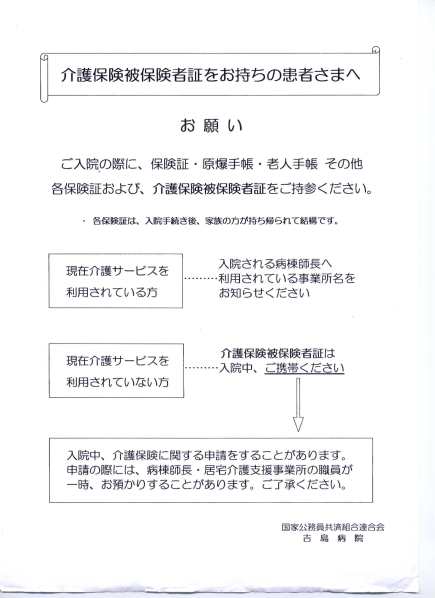 Cine folosea şi asigurarea la serviciul de îngrijire la domiciliu înainte de internare, este rugat să anunţe verbal la fişier. În ultimul chenar, pacientul este anunţat că, în cazul în care foloseşte şi asigurarea de îngrijire la domiciliu, s-ar putea ca pe durata internării să i se ceară cardul pentru puţin timp, de către şeful de secţie sau de către agentul de îngrijire la domiciliu. (Pe semne, la bolile de plămîni, internările lungi s-ar putea să încalece şi termene de decontare.)