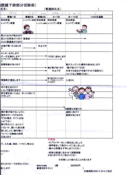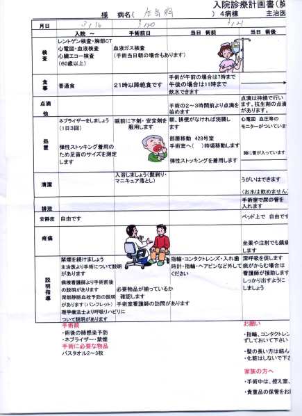 Calendarul chirurgical. Cuprinde cam aceleaşi rubrici. În plus, descrie procedura de identificare verbală a pacientului. În episoadele anterioare am arătat că ea este obligatorie. Spre deosebire de spitalul Takanobashi, la spitalul Yoshijima, identificarea verbală are loc în două locuri. O dată în antecamera de operaţii (de către asistentă) iar a doua oară, întrebarea vine direct de la medicul chirurg.